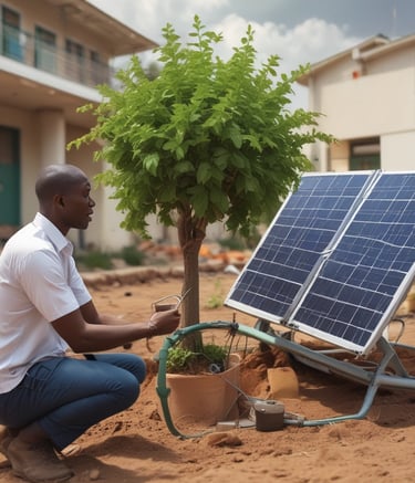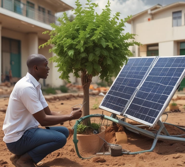 A sleek, modern illustration showing AI technology analyzing environmental data over an African landscape.